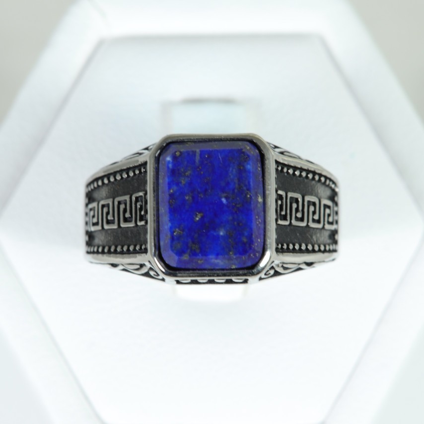 Chevalière en Lapis Lazuli, serti Acier