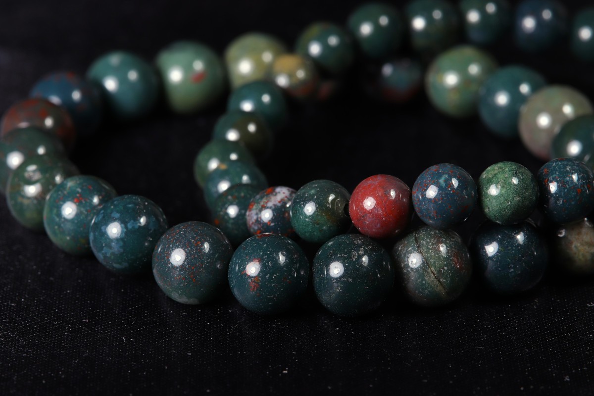 Le Jaspe Héliotrope est une variété verte foncée avec des taches rouges d’oxyde de fer.