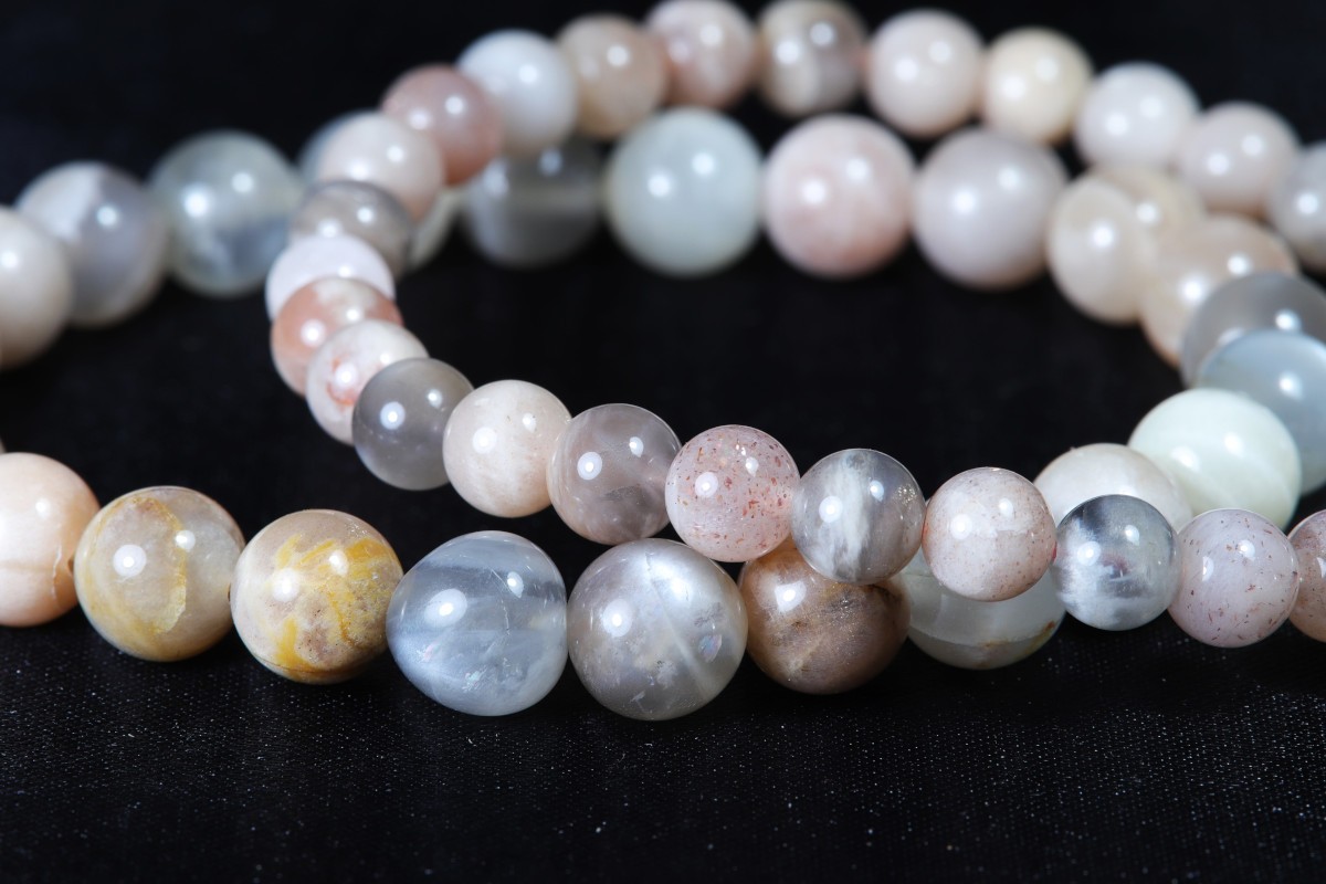 Bracelet élastique en Pierre de Lune, grise et pèche.