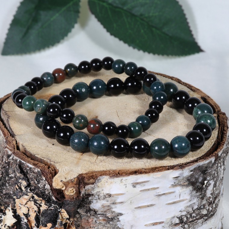 Bracelet élastique en Jaspe Héliotrope et Onyx.