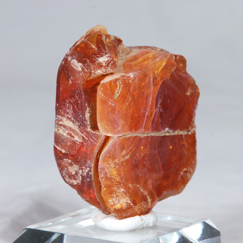 Cette pierre d'une dimension exceptionnelle pour l'espèce présente néanmoins une belle transparence avec une couleur orange vive.