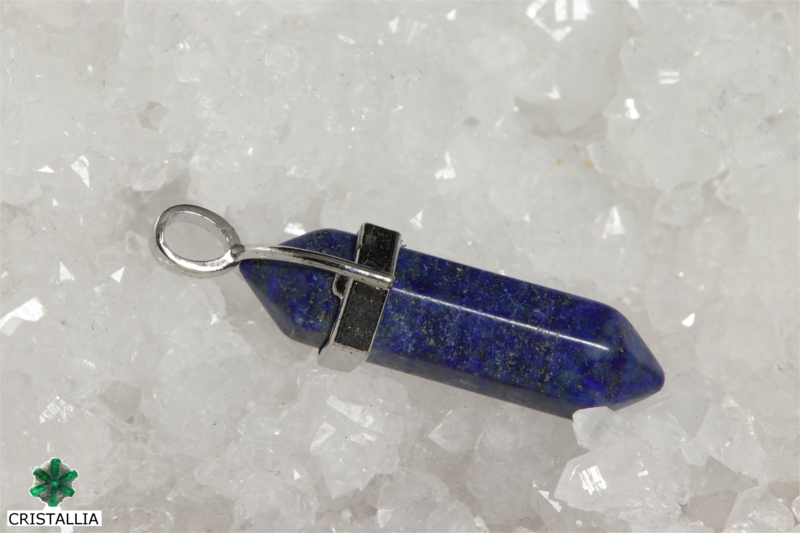 Pendentif en Lapis Lazuli taillé en pointe avec une attache en acier