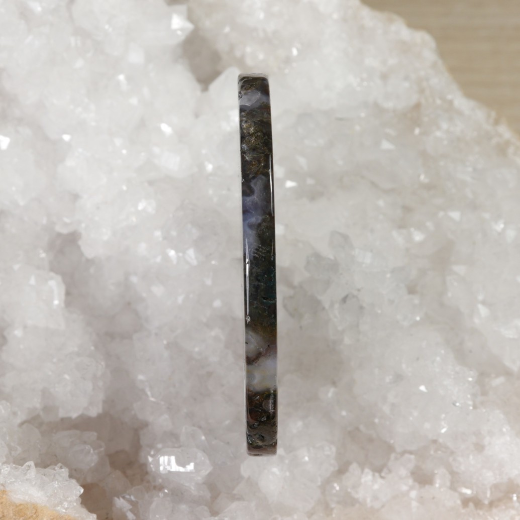 L’Agate mousse doit son nom à la présence d’inclusions verte de chlorite. Elle peut être laiteuse à translucide.