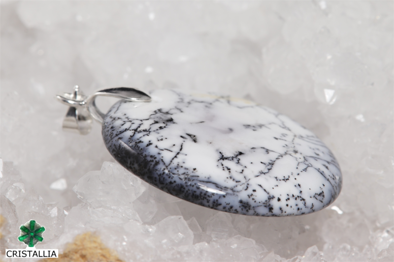 L'Opale dendritique est une variété d'Opale commune (sans reflets) qui se caractérise par la présence de petites dendrites noires de manganèse.