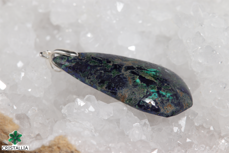 Pendentif en Azurite Malachite, bélière Argent