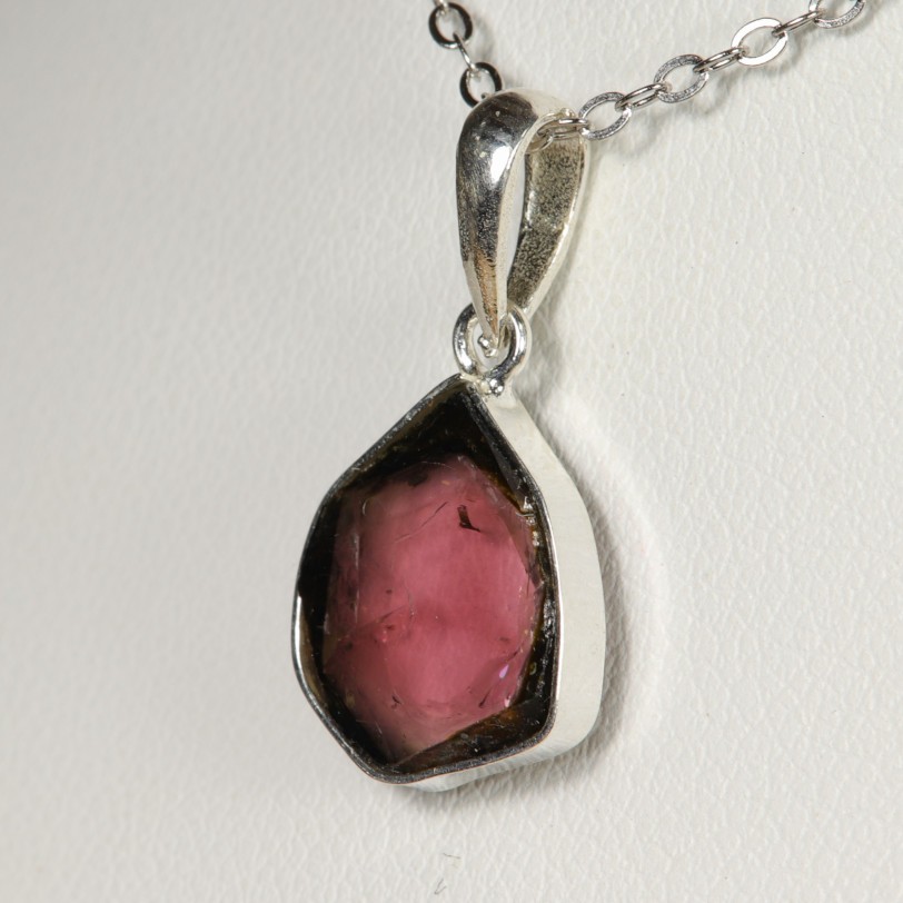Pendentif en Tourmaline Melon d'eau serti Argent