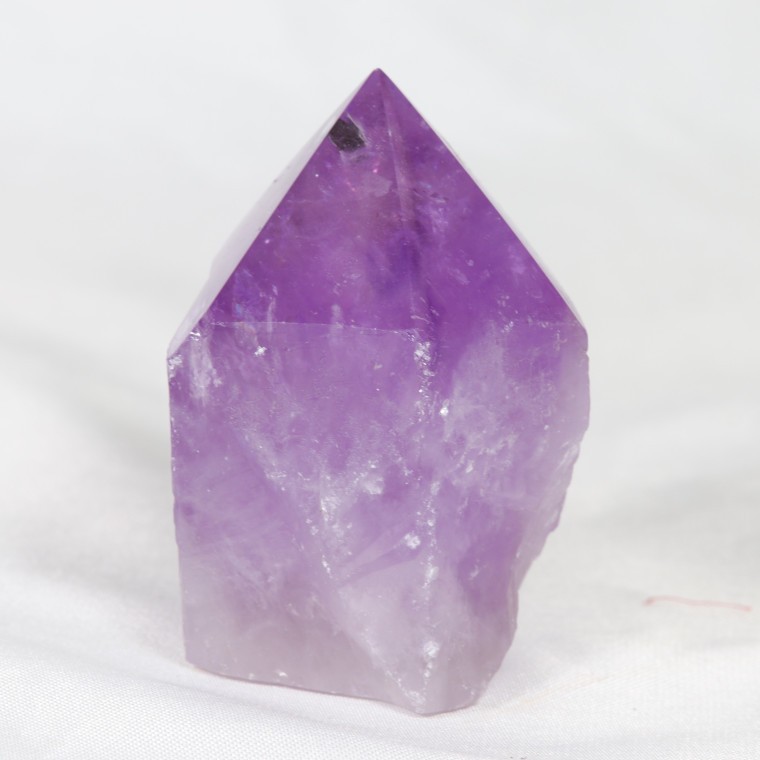 Cette pierre violette de la famille des Quartz est connue depuis l’antiquité. Sa couleur varie de très pâle, presque blanc, à très foncé, presque noire. C’est le fer qui la colore. Plus sa concentration est grande et plus la couleur est sombre. Les Améthystes les plus recherchées sont transparentes avec une couleur vive.