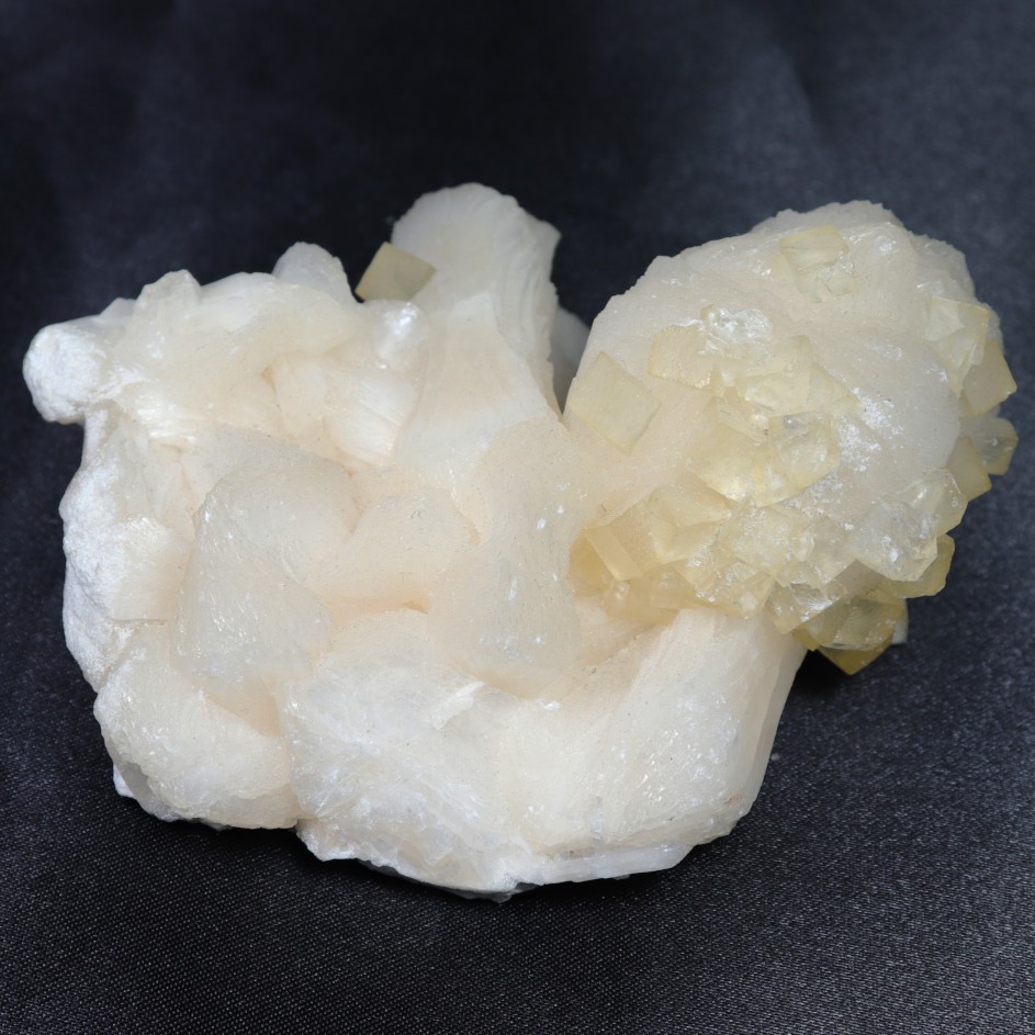 Jolie association de Stilbite avec de la Calcite en cristaux cubiques.