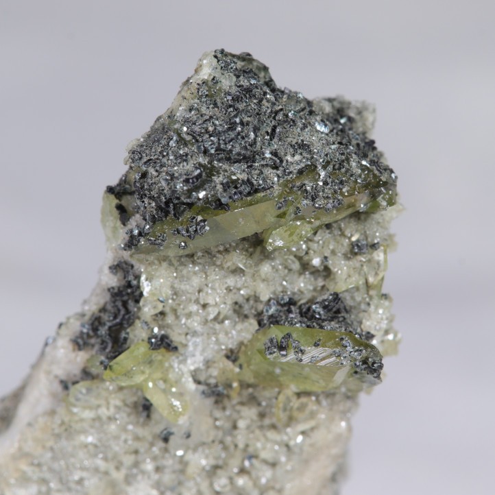 Les cristaux sont bien formés, présentent une couleur verte jaune vive et sont en excellent état.
