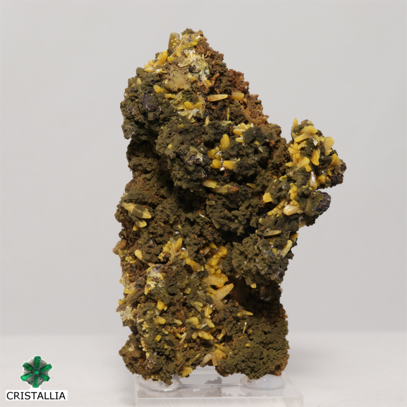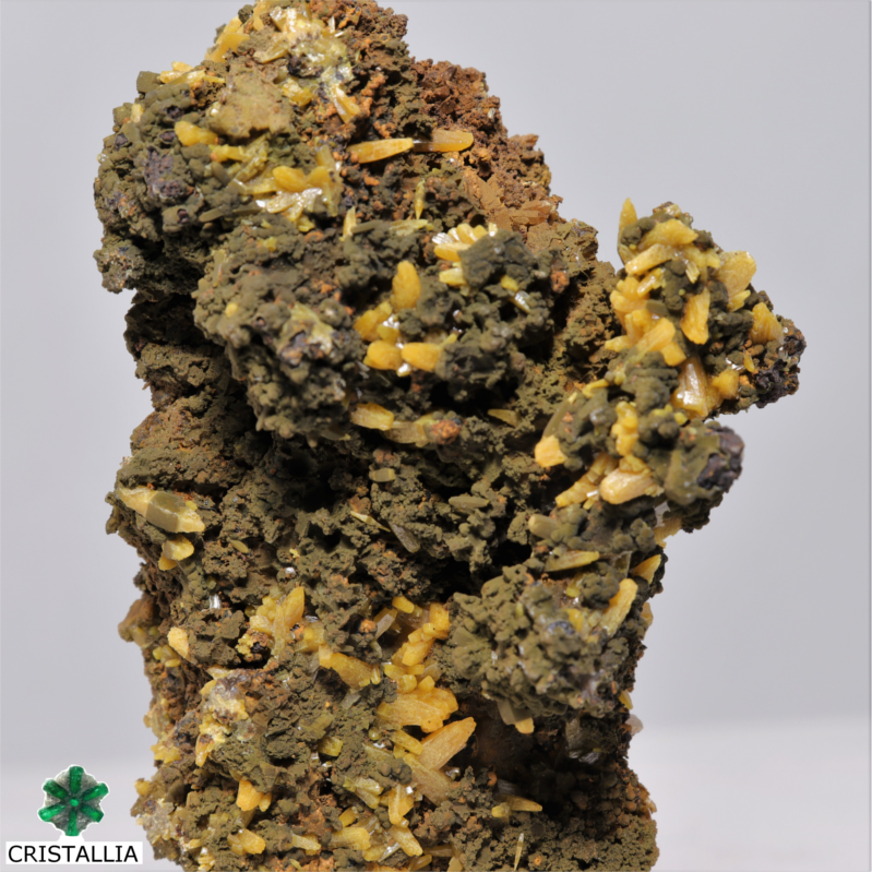 Elle forme généralement des cristaux tabulaires jaune à orange.