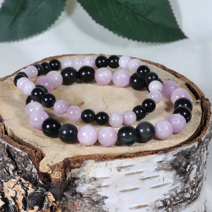 Bracelet élastique en Obsidienne Oeil Céleste et Kunzite.