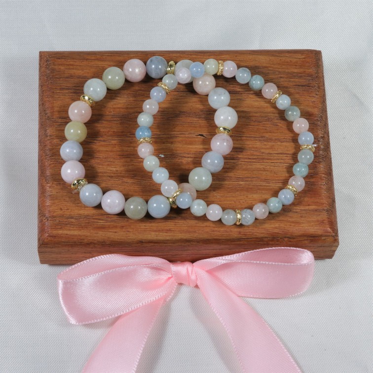 Ce Bracelet est composé d'Aigue-Marine, de Morganite et d'Héliodore.