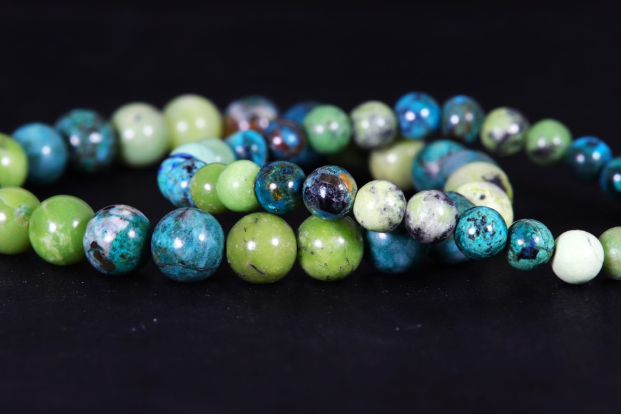 Bracelet élastique en Chrysocolle et Chrysoprase.